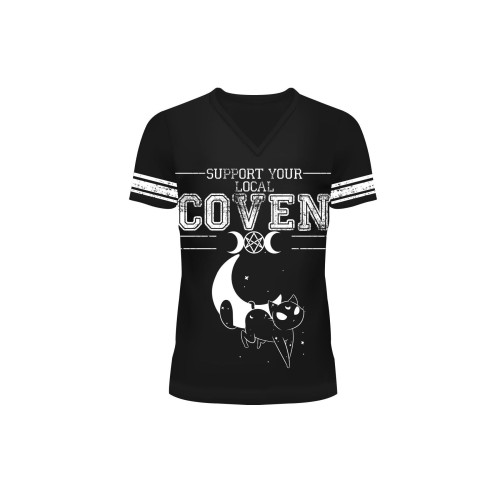 MOON CATS VARSITY T LADIES BLACK