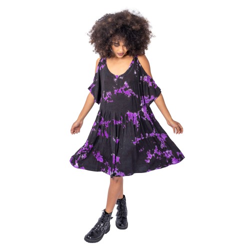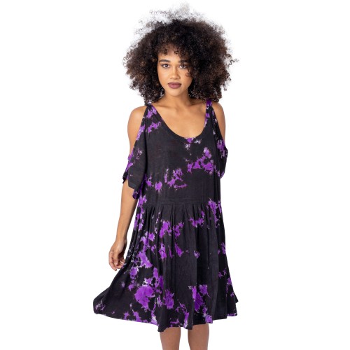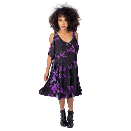 INNOCENT LIFESTYLE MAGARI DRESS LADIES BLACK/PURPLE TIE DYE