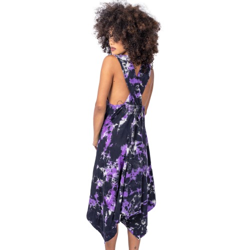 INNOCENT LIFESTYLE SONNET DRESS LADIES BLACK/PURPLE TIE DYE
