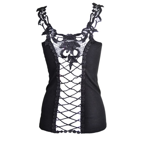 CROSS LACE VEST LADIES BLACK