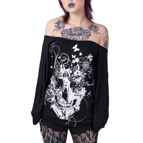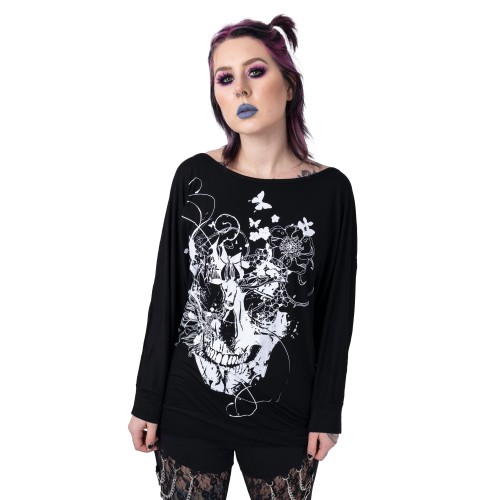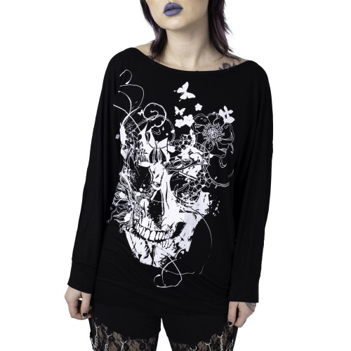 GRUNGE SKULL TOP LADIES BLACK SIZE S/M