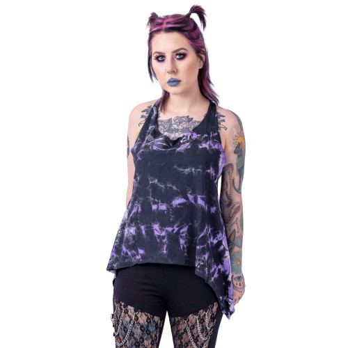 INNOCENT LIFESTYLE TYE KNOT TOP LADIES BLACK/PURPLE TIE DYE