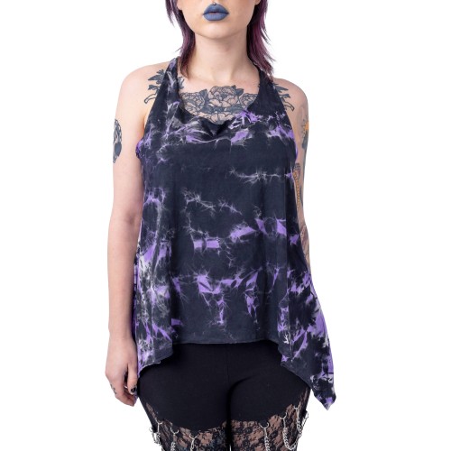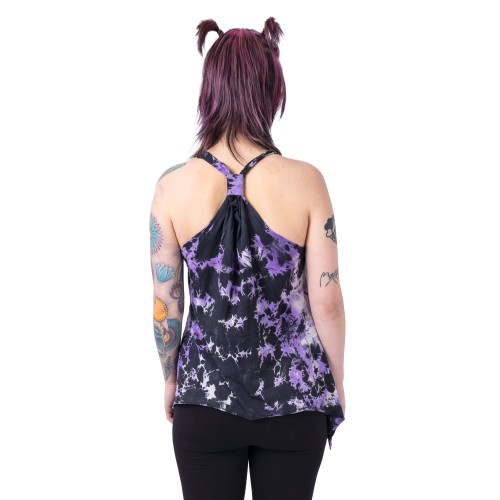 TYE KNOT TOP LADIES BLACK/PURPLE TIE DYE SIZE S