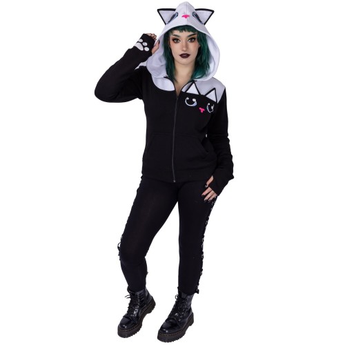 KITTY HOOD LADIES BLACK/WHITE
