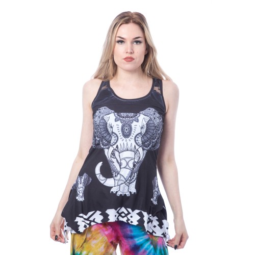 MANDALA ELEPHANT LACE PANEL VEST LADIES BLACK/WHITE