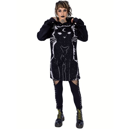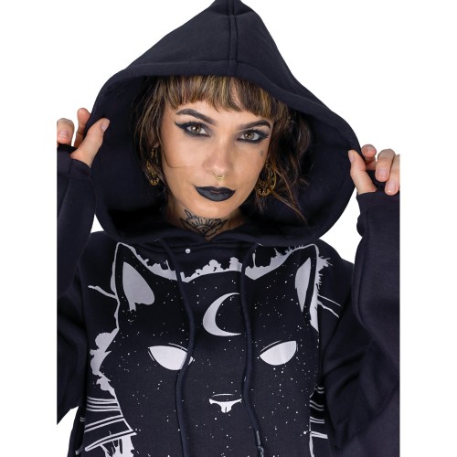 MOON KITTY HOOD LADIES BLACK