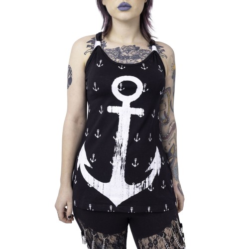 ROCKABELLA HARBOUR TOP LADIES BLACK/WHITE