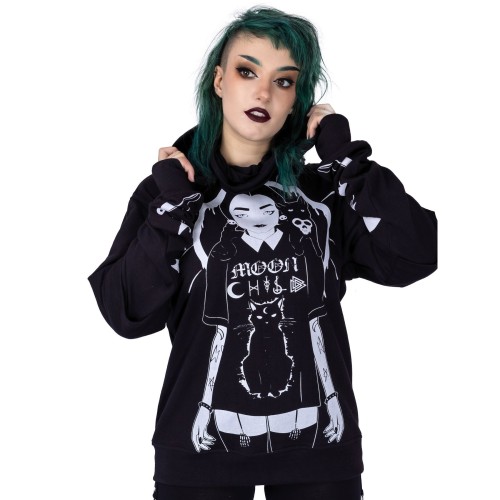 WEDNESDAY MOON HOOD LADIES BLACK